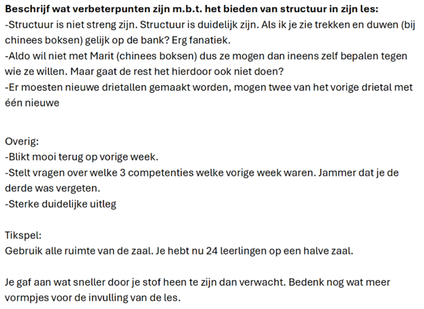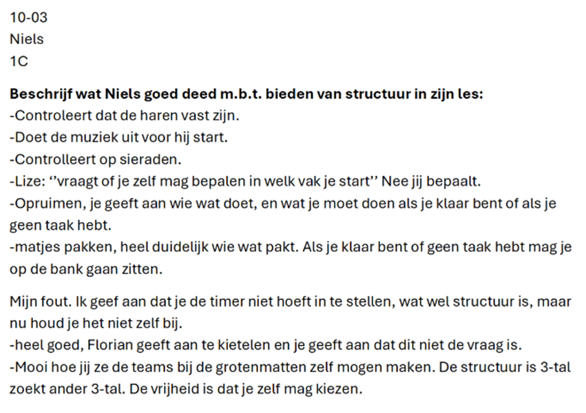 Mijn leerpunt voor het volgend semester is om andere docenten te gebruiken om achter de beginsituatie te komen van een klas. Zo wil ik middels andere perspectieven de groepsdynamiek in kaart kunnen brengen.