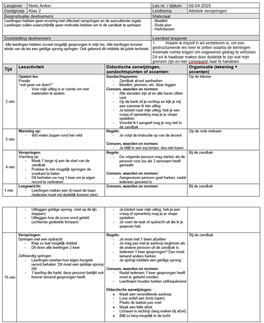 Door duidelijk van tevoren te beschrijven wat mijn grenzen, waarden en normen zijn helpt dit mij om hier ook naar te handelen. Hiermee creëer ik een cultuur en een eigen visie op het lesgeven. Door dit uitgebreid uit te schrijven kan ik al mijn acties en handelingen verantwoorden. Door te experimenteren met verschillende visies op het uitschijven van een lesvoorbereiding, heb ik voor mijzelf duidelijk gemaakt wat voor mij het fijnst werkt. Door korte punten te formuleren bied ik meer structuur voor mijzelf aan. Door zelf een leerlijn uit te werken toon ik aan dat ik mee kan denken aan het maken van een vakwerkplan en rekening kan houden met de behoefte/niveau van de doelgroep. Door mijn les ook zo te evalueren wordt de les nog leerzamer voor de leerlingen.