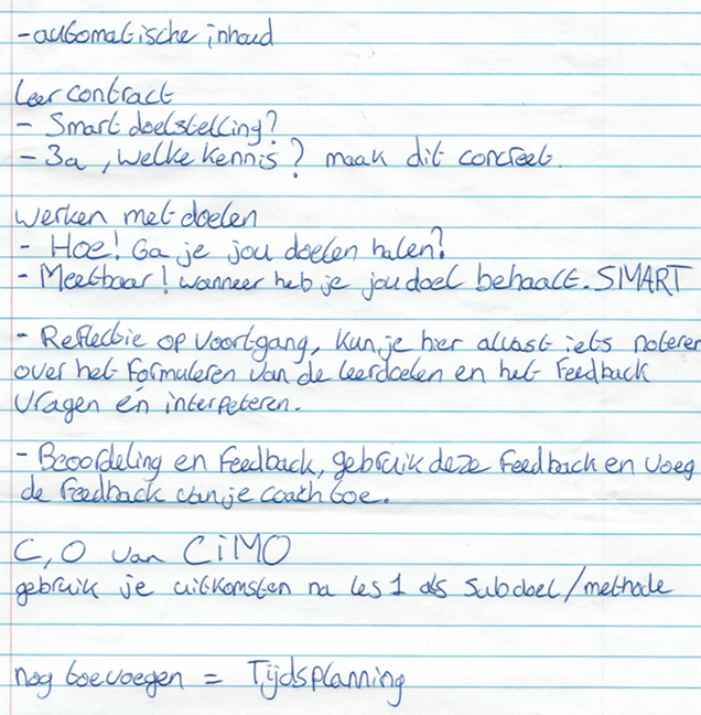 Mijn leerpunt voor het volgend semester is om andere docenten te gebruiken om achter de beginsituatie te komen van een klas. Zo wil ik middels andere perspectieven de groepsdynamiek in kaart kunnen brengen.