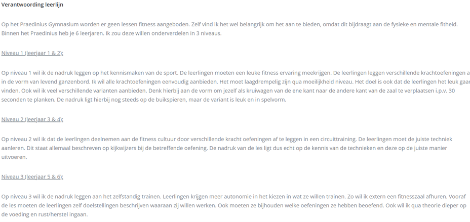 Om aan te kunnen tonen dat ik aan de leeruitkomst ‘vakinhoudelijk’ voldoe, heb ik lessen gerealiseerd, verantwoord en geëvalueerd. Dit deed ik vanuit gegeven kaders. De lesthema’s waren al bepaald alleen mocht ik zelf de lessen inrichten. Dit deed ik vanuit mijn visie. Zo kwam er in elke lesvoorbereiding terug wat mijn grenzen, waarden en normen waren. Dit heb ik ook voorafgaand aan een les verantwoord en uitgeschreven. Verder heb ik geëxperimenteerd met een andere visie op het maken van een lesvoorbereiding door alles kort en puntsgewijs te formuleren. Ook heb ik een eigen leerlijn gemaakt en uitgeschreven die nog niet bestond in het vakwerkplan van het Preadinius Gymnasium. Ook ben ik bezig geweest met het evalueren van mijn les.